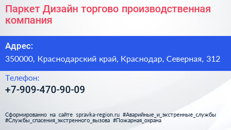 Паркет-Дизайн, торгово-производственная компания по адресу 350000, Краснодарский край, Краснодар, Северная, 312 в дальнейшем Организация, размещена в следующих категориях: