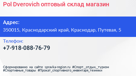 Pol Dverovich, оптовый склад-магазин по адресу 350015, Краснодарский край, Краснодар, Путевая, 5 в дальнейшем Организация, размещена в следующих категориях: