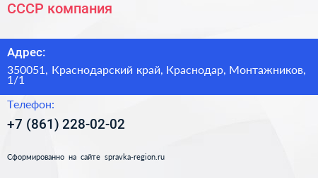 СССР, компания по адресу 350051, Краснодарский край, Краснодар, Монтажников, 1/1 в дальнейшем Организация, размещена в следующих категориях: