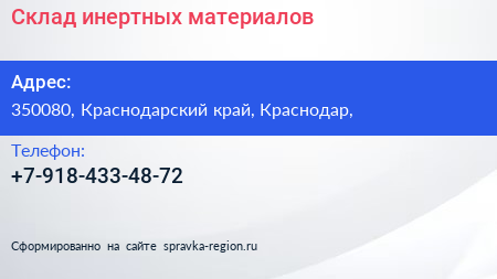 Склад инертных материалов по адресу 350080, Краснодарский край, Краснодар, в дальнейшем Организация, размещена в следующих категориях: