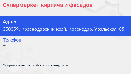 Супермаркет кирпича и фасадов по адресу 350059, Краснодарский край, Краснодар, Уральская, 85 в дальнейшем Организация, размещена в следующих категориях: