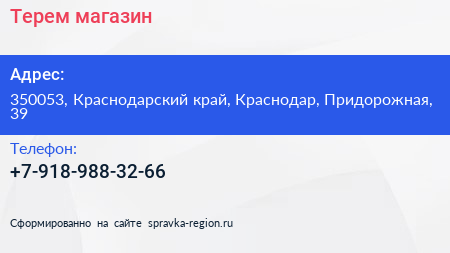 Терем, магазин по адресу 350053, Краснодарский край, Краснодар, Придорожная, 39 в дальнейшем Организация, размещена в следующих категориях: