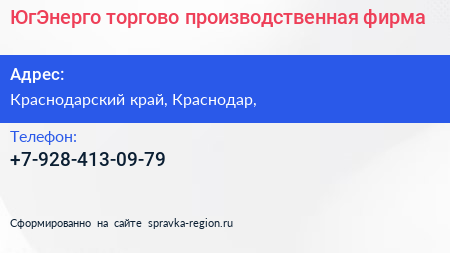 ЮгЭнерго, торгово-производственная фирма по адресу Краснодарский край, Краснодар, в дальнейшем Организация, размещена в следующих категориях: