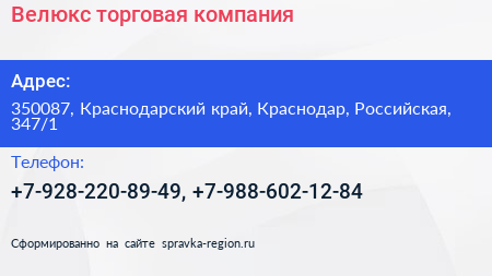 Велюкс, торговая компания по адресу 350087, Краснодарский край, Краснодар, Российская, 347/1 в дальнейшем Организация, размещена в следующих категориях: