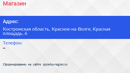 Магазин по адресу Костромская область, Красное-на-Волге, Красная площадь, 6 в дальнейшем Организация, размещена в следующих категориях: