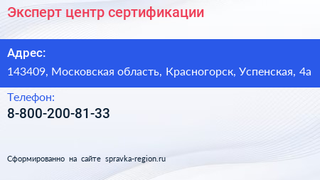 Эксперт, центр сертификации по адресу 143409, Московская область, Красногорск, Успенская, 4а в дальнейшем Организация, размещена в следующих категориях: