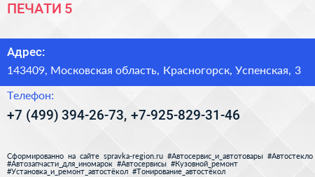 ПЕЧАТИ 5 по адресу 143409, Московская область, Красногорск, Успенская, 3 в дальнейшем Организация, размещена в следующих категориях: