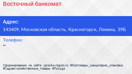 Восточный, банкомат по адресу 143409, Московская область, Красногорск, Ленина, 39Б в дальнейшем Организация, размещена в следующих категориях: