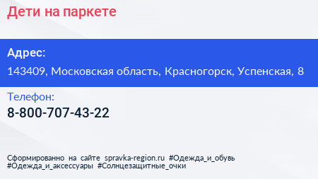 Дети на паркете по адресу 143409, Московская область, Красногорск, Успенская, 8 в дальнейшем Организация, размещена в следующих категориях: