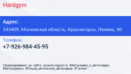 Hardgym по адресу 143409, Московская область, Красногорск, Ленина, 40 в дальнейшем Организация, размещена в следующих категориях: