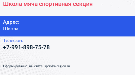 Школа мяча, спортивная секция по адресу Школа в дальнейшем Организация, размещена в следующих категориях: