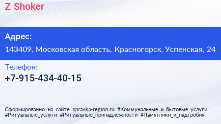 Z-Shoker по адресу 143409, Московская область, Красногорск, Успенская, 24 в дальнейшем Организация, размещена в следующих категориях: