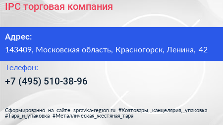 IPC, торговая компания по адресу 143409, Московская область, Красногорск, Ленина, 42 в дальнейшем Организация, размещена в следующих категориях: