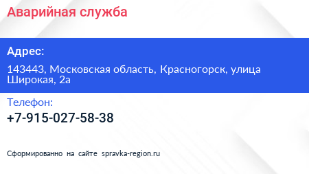 Аварийная служба по адресу 143443, Московская область, Красногорск, улица Широкая, 2а в дальнейшем Организация, размещена в следующих категориях:
