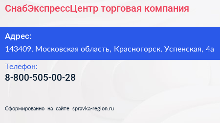 СнабЭкспрессЦентр, торговая компания по адресу 143409, Московская область, Красногорск, Успенская, 4а в дальнейшем Организация, размещена в следующих категориях: