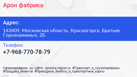 Арон, фабрика по адресу 143409, Московская область, Красногорск, Братьев Горожанкиных, 2Б в дальнейшем Организация, размещена в следующих категориях: