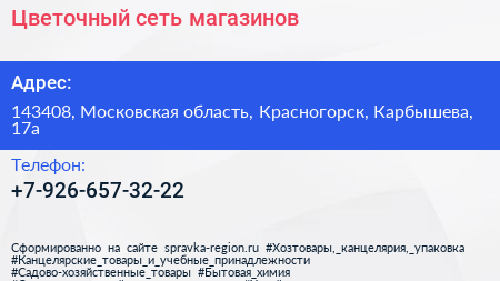Цветочный, сеть магазинов по адресу 143408, Московская область, Красногорск, Карбышева, 17а в дальнейшем Организация, размещена в следующих категориях: