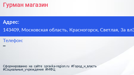 Гурман, магазин по адресу 143409, Московская область, Красногорск, Светлая, 3а вл3 в дальнейшем Организация, размещена в следующих категориях: