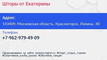 Шторы от Екатерины по адресу 143409, Московская область, Красногорск, Ленина, 40 в дальнейшем Организация, размещена в следующих категориях: