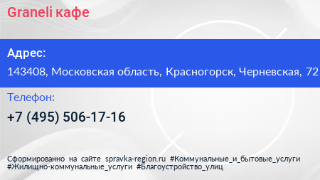 Graneli, кафе по адресу 143408, Московская область, Красногорск, Черневская, 72 в дальнейшем Организация, размещена в следующих категориях: