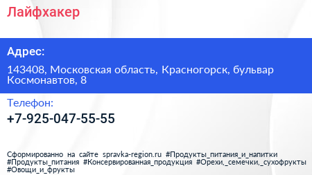 Лайфхакер по адресу 143408, Московская область, Красногорск, бульвар Космонавтов, 8 в дальнейшем Организация, размещена в следующих категориях: