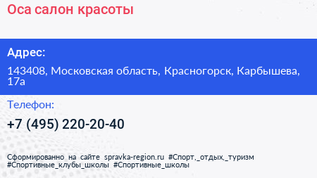 Оса, салон красоты по адресу 143408, Московская область, Красногорск, Карбышева, 17а в дальнейшем Организация, размещена в следующих категориях: