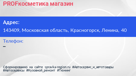 PROFкосметика, магазин по адресу 143409, Московская область, Красногорск, Ленина, 40 в дальнейшем Организация, размещена в следующих категориях: