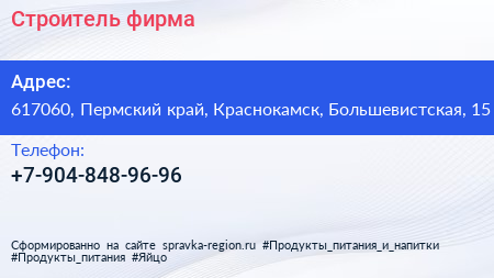 Строитель, фирма по адресу 617060, Пермский край, Краснокамск, Большевистская, 15 в дальнейшем Организация, размещена в следующих категориях: