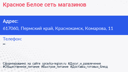 Красное & Белое, сеть магазинов по адресу 617060, Пермский край, Краснокамск, Комарова, 11 в дальнейшем Организация, размещена в следующих категориях: