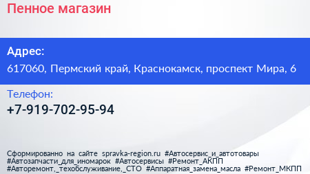 Пенное, магазин по адресу 617060, Пермский край, Краснокамск, проспект Мира, 6 в дальнейшем Организация, размещена в следующих категориях: