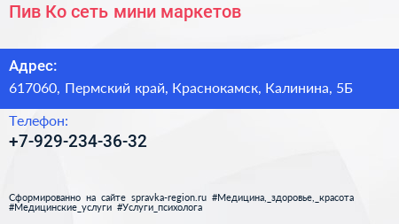 Пив & Ко, сеть мини-маркетов по адресу 617060, Пермский край, Краснокамск, Калинина, 5Б в дальнейшем Организация, размещена в следующих категориях: