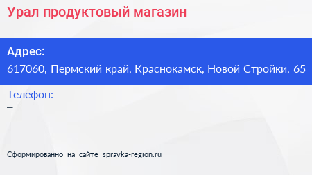 Урал, продуктовый магазин по адресу 617060, Пермский край, Краснокамск, Новой Стройки, 65 в дальнейшем Организация, размещена в следующих категориях: