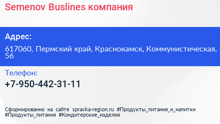 Semenov Buslines, компания по адресу 617060, Пермский край, Краснокамск, Коммунистическая, 56 в дальнейшем Организация, размещена в следующих категориях: