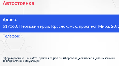 Автостоянка по адресу 617060, Пермский край, Краснокамск, проспект Мира, 20/2 в дальнейшем Организация, размещена в следующих категориях: