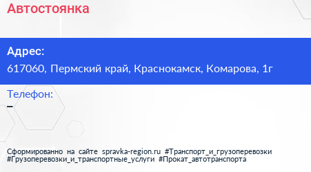Автостоянка по адресу 617060, Пермский край, Краснокамск, Комарова, 1г в дальнейшем Организация, размещена в следующих категориях: