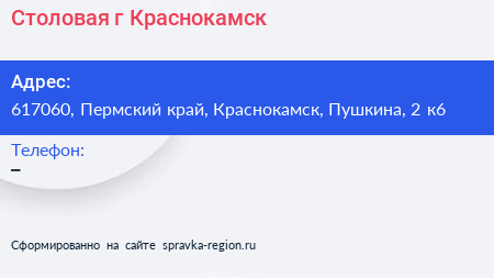 Столовая, г. Краснокамск по адресу 617060, Пермский край, Краснокамск, Пушкина, 2 к6 в дальнейшем Организация, размещена в следующих категориях: