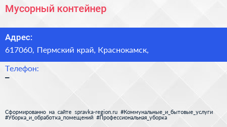Мусорный контейнер по адресу 617060, Пермский край, Краснокамск, в дальнейшем Организация, размещена в следующих категориях: