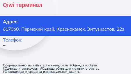 Qiwi, терминал по адресу 617060, Пермский край, Краснокамск, Энтузиастов, 22а в дальнейшем Организация, размещена в следующих категориях: