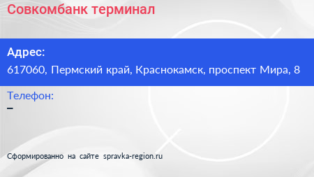 Совкомбанк, терминал по адресу 617060, Пермский край, Краснокамск, проспект Мира, 8 в дальнейшем Организация, размещена в следующих категориях: