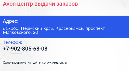 Avon, центр выдачи заказов по адресу 617060, Пермский край, Краснокамск, проспект Маяковского, 20 в дальнейшем Организация, размещена в следующих категориях: