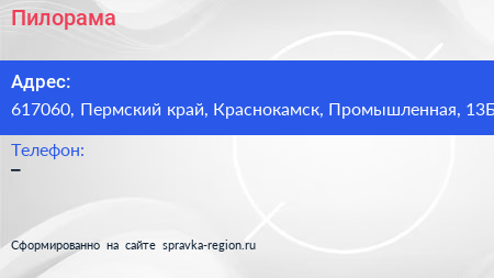 Адрес: Пермский край, Краснокамск, Промышленная, 13а