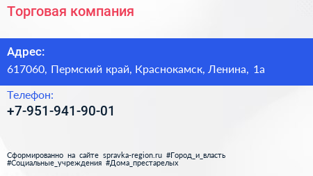 Торговая компания по адресу 617060, Пермский край, Краснокамск, Ленина, 1а в дальнейшем Организация, размещена в следующих категориях: