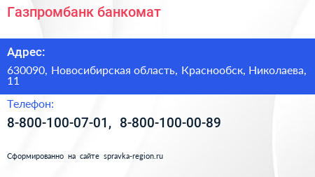 Газпромбанк, банкомат по адресу 630090, Новосибирская область, Краснообск, Николаева, 11 в дальнейшем Организация, размещена в следующих категориях: