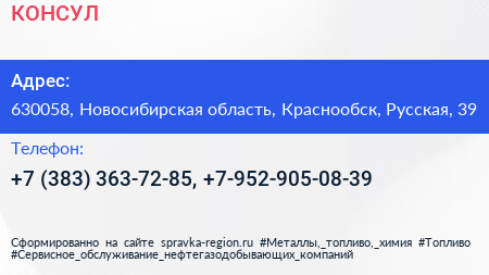 КОНСУЛ по адресу 630058, Новосибирская область, Краснообск, Русская, 39 в дальнейшем Организация, размещена в следующих категориях: