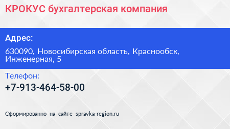 КРОКУС, бухгалтерская компания по адресу 630090, Новосибирская область, Краснообск, Инженерная, 5 в дальнейшем Организация, размещена в следующих категориях: