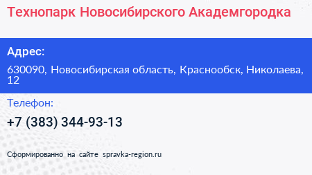 Технопарк Новосибирского Академгородка по адресу 630090, Новосибирская область, Краснообск, Николаева, 12 в дальнейшем Организация, размещена в следующих категориях: