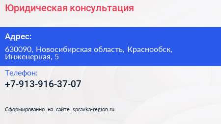 Юридическая консультация по адресу 630090, Новосибирская область, Краснообск, Инженерная, 5 в дальнейшем Организация, размещена в следующих категориях: