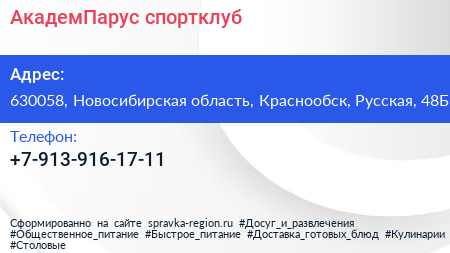 АкадемПарус, спортклуб по адресу 630058, Новосибирская область, Краснообск, Русская, 48Б в дальнейшем Организация, размещена в следующих категориях:
