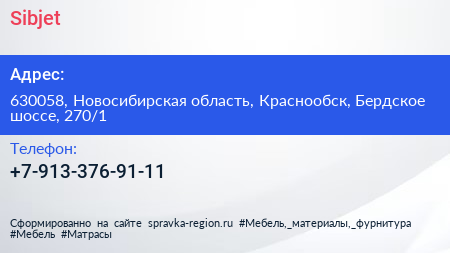 Sibjet по адресу 630058, Новосибирская область, Краснообск, Бердское шоссе, 270/1 в дальнейшем Организация, размещена в следующих категориях: