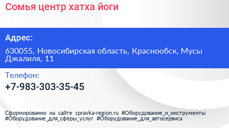 Сомья, центр хатха-йоги по адресу 630055, Новосибирская область, Краснообск, Мусы Джалиля, 11 в дальнейшем Организация, размещена в следующих категориях: